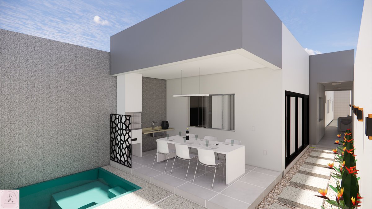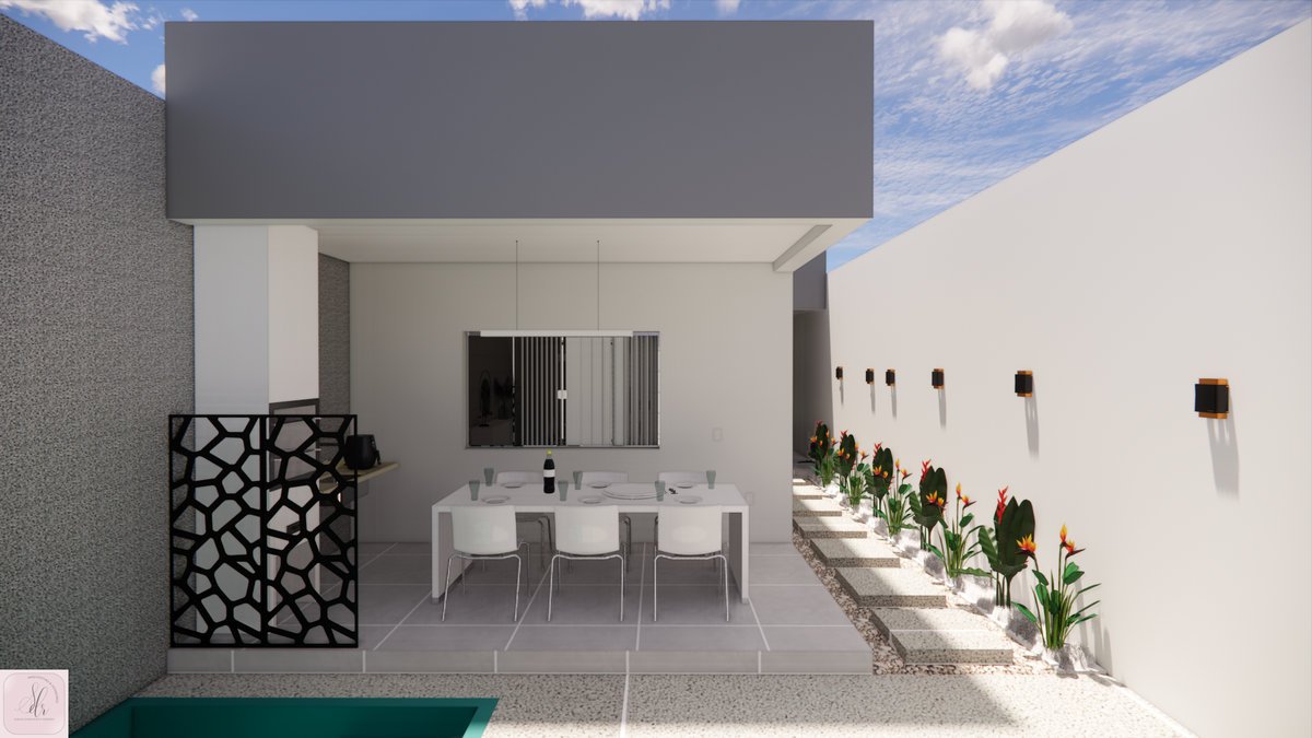 Salinas, Minas Gerais, criamos o projeto para uma casa em um terreno de 6m x 30m, pensada para receber uma família que está crescendo. A cliente queria muita iluminação e ventilação natural, além de uma área gourmet na frente e um living integrado para receber com conforto.