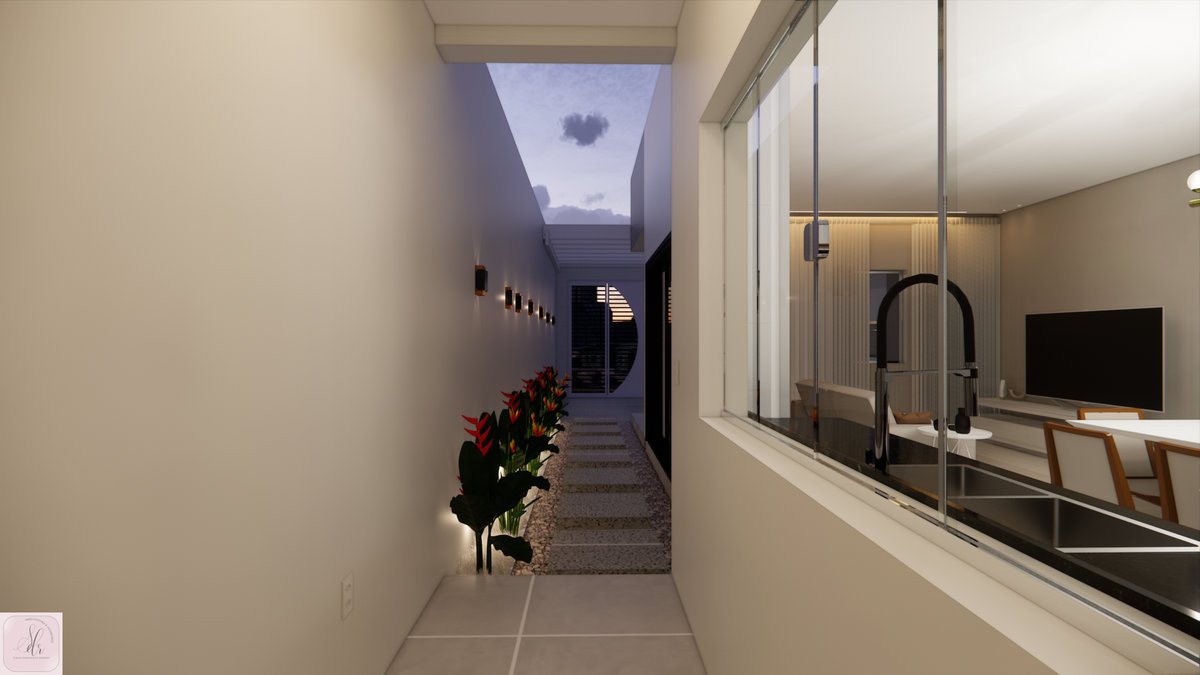 A entrada lateral ganhou um hall acolhedor, com piso drenante, seixos e um jardim de folhagens que conduz até a área social. Os quartos foram planejados para serem amplos e confortáveis, proporcionando o espaço que uma família precisa para viver bem.