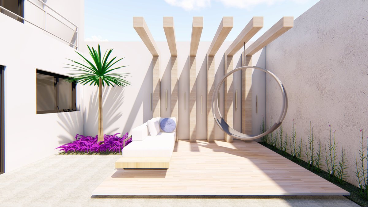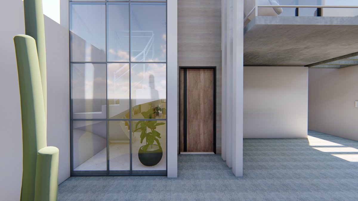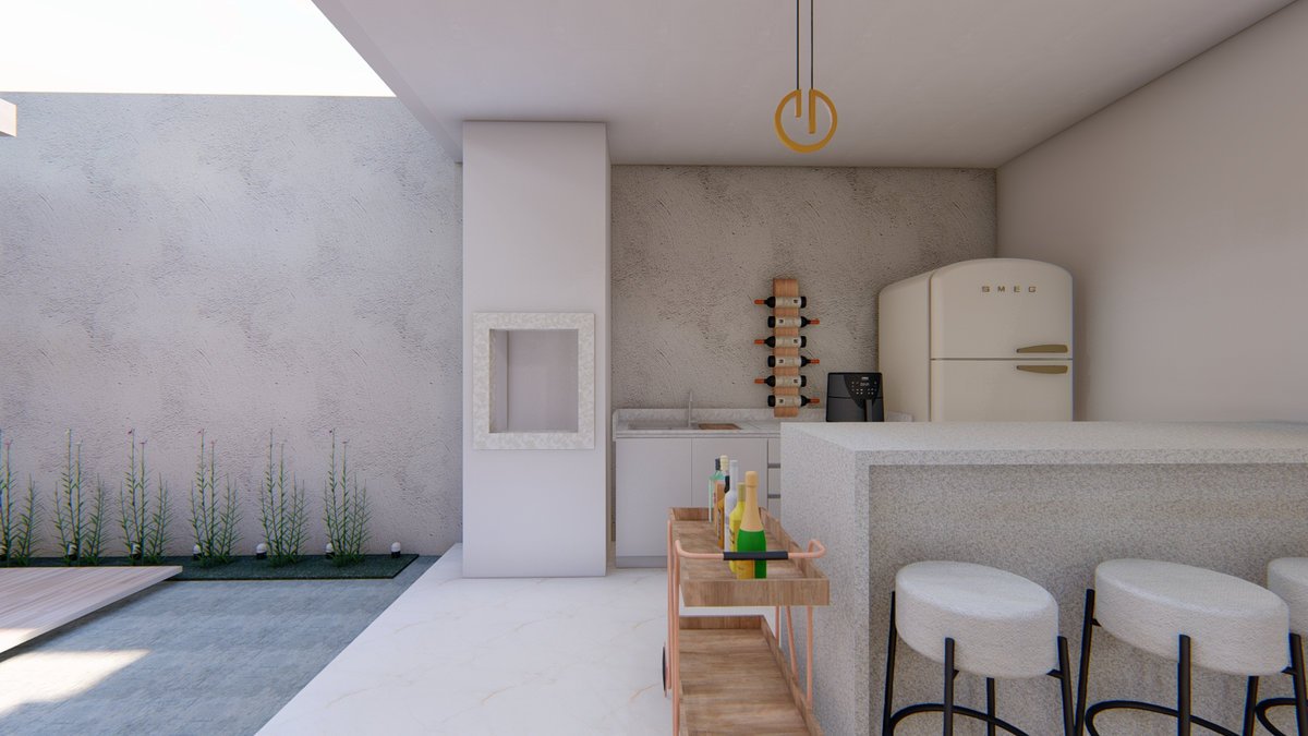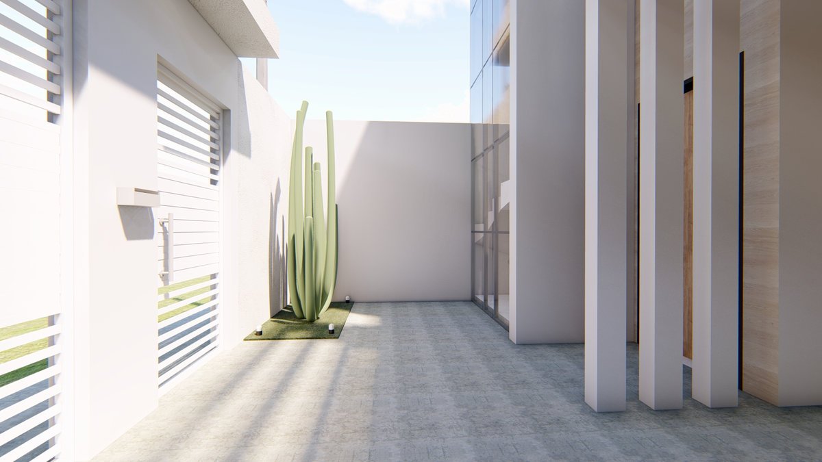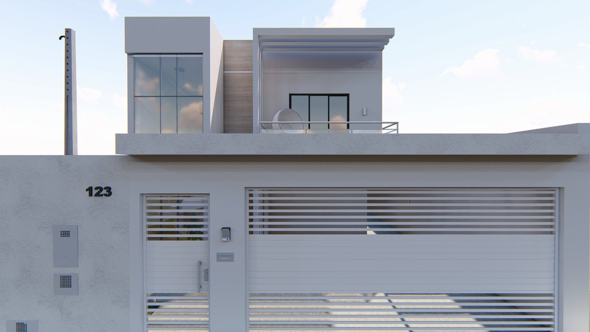 Essa casa será construída em um terreno de 255 metros quadrados, com apenas 9 metros de frente. Com um bom planejamento, conseguimos criar uma casa linda e super contemporânea. Além da garagem para dois carros, um pequeno espaço de jardim pra trazer cor e beleza para essa entrada.