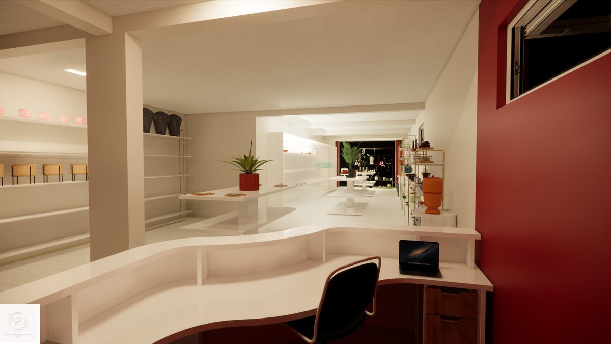 Essa loja pertence a um casal jovem e cheio de ideias interessantes. Eles me procuraram para transformar essas ideias em realidade, e assim ficou a loja.