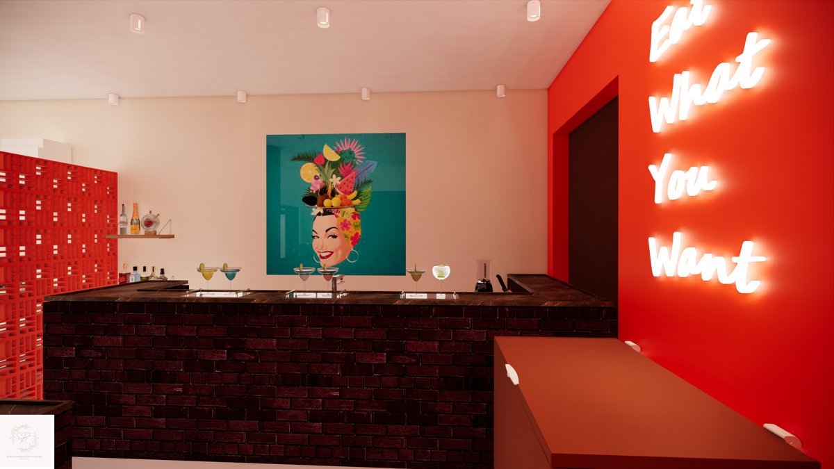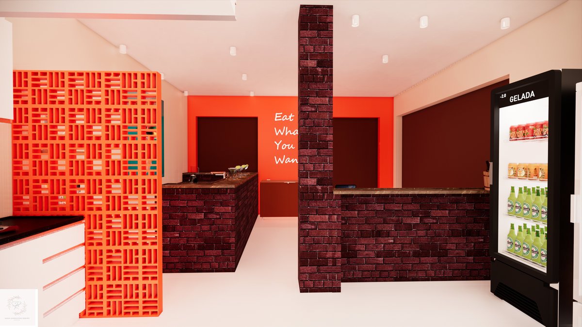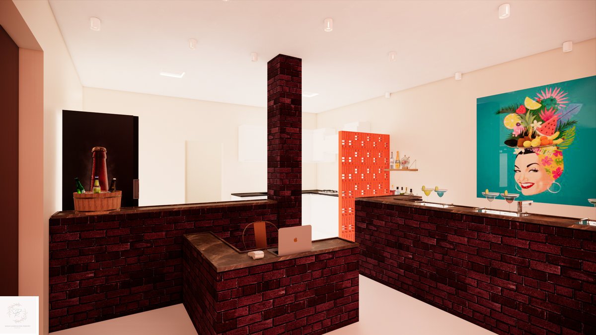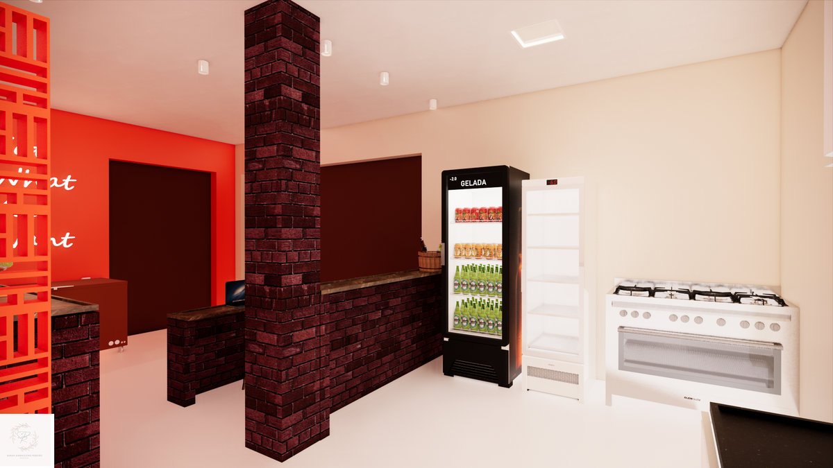 O ponto de destaque desse projeto é o bar, que atenderá não somente o interior da loja, como a porta do lado de fora.